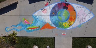 "The All-Seeing Eye", represents in our environment what we have seen, what we see now, and what we will see and imagine for our Earth for our future. The salmon plays a big part in water justice in NorCal.